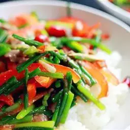 4、转大火,加入水淀粉勾薄芡,翻炒出锅。