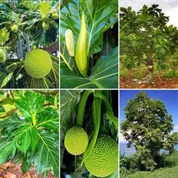 面包树 Fosberg)是桑科波罗蜜属植物。叶大,成熟之叶羽状分裂,表面深绿色,…