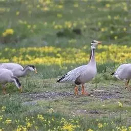 斑头雁是雁形目鸭科雁属鸟类,又称白头雁、黑纹头雁。通体大都灰褐色,头和颈侧白色,…