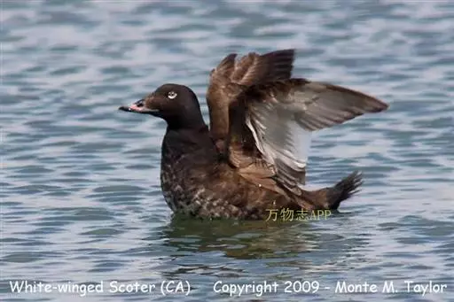 斑脸海番鸭(学名:Melanitta fusca)为雁形目鸭科的鸟类,是中型水鸭,身长51-58厘米,翼展79-90厘米,雌鸭体重1100-1250克,雄鸭体重1200-2000克。寿命13年。是一种中等体型的深色矮扁型海鸭。属于潜水鸭类。雄鸭全身披黑褐色羽毛,上嘴基有红、黄、黑色的肉瘤;眼后有一新月形白色斑。雌鸟头、颈棕黑色;上嘴基及耳部有一淡白色块斑;无肉瘤。下体色泽较淡;胸部中央和腹的两侧白色。极善游泳和潜水,在陆地上行走就显得笨拙,除繁殖期外多见于海洋中,主要以贝类为食。
