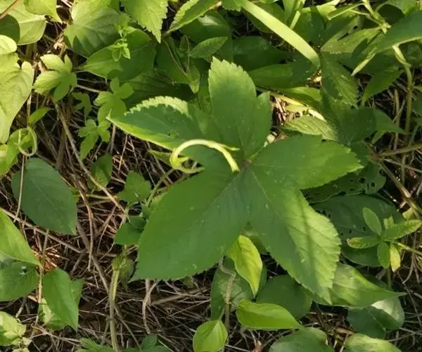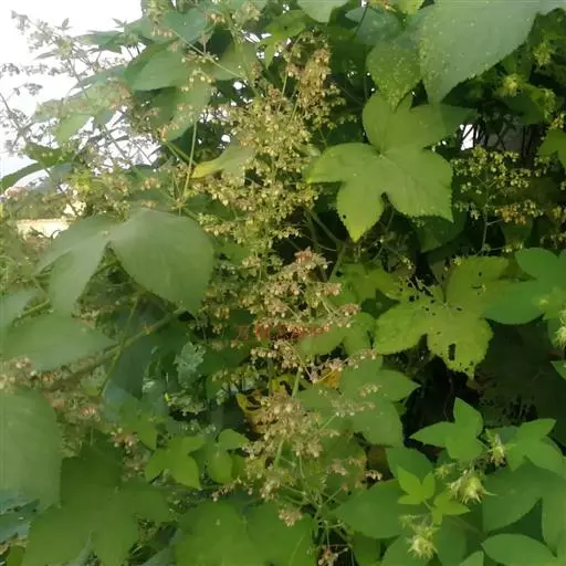 葎草(学名:Humulus scandens (Lour.) Merr. )是桑科,葎草属多年生攀援草本植物,茎、枝、叶柄均具倒钩刺。叶片纸质,肾状五角形,掌状,基部心脏形,表面粗糙,背面有柔毛和黄色腺体,裂片卵状三角形,边缘具锯齿;雄花小,黄绿色,圆锥花序,雌花序球果状,苞片纸质,三角形,子房为苞片包围,瘦果成熟时露出苞片外。花期春夏,果期秋季。