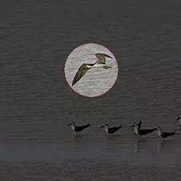 剪嘴鸥下喙比上喙长,捕食时紧贴水面飞行,将下喙叉入水中分水从而将食物送入嘴中。