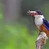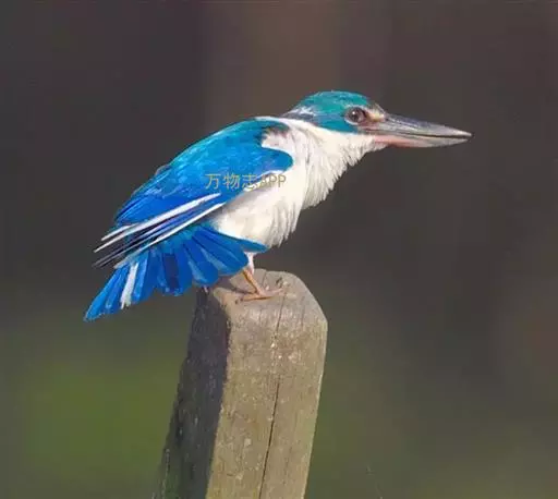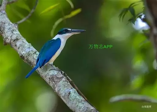 白领翡翠:有50个亚种。体长18厘米,体重35-40克。是一种蓝白色翡翠鸟。…