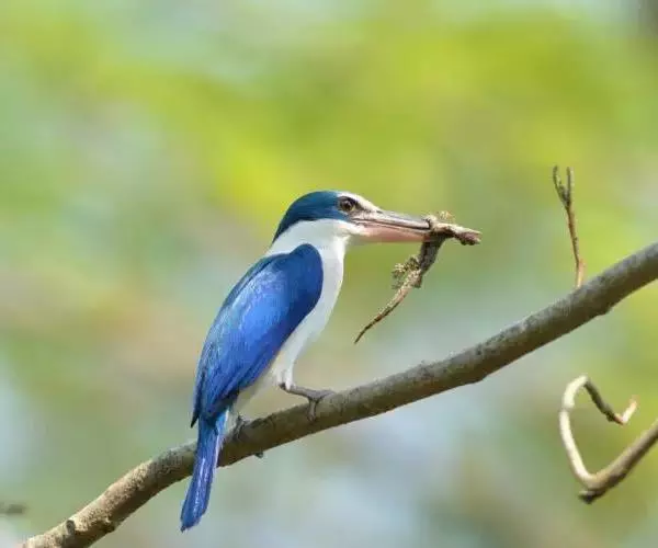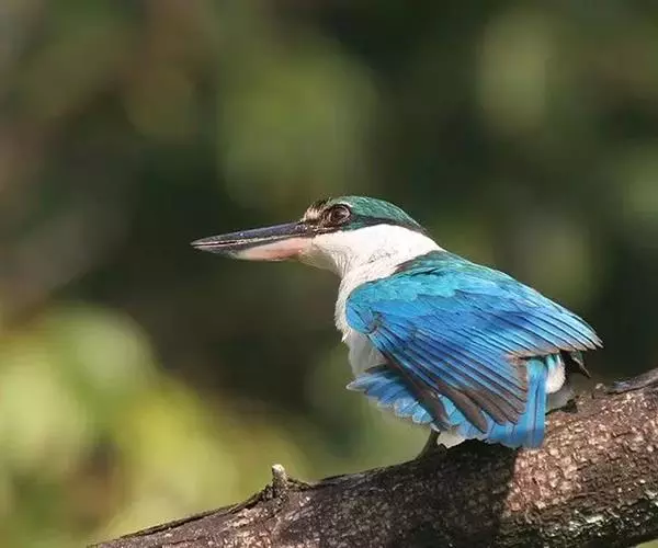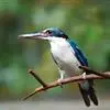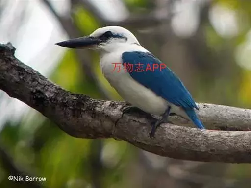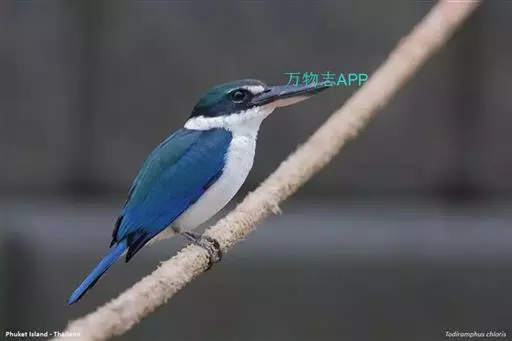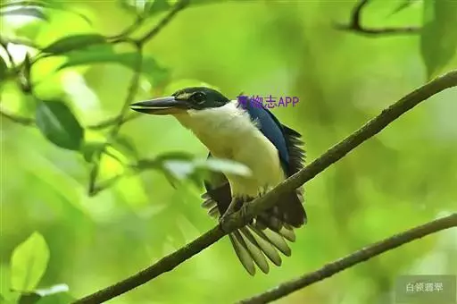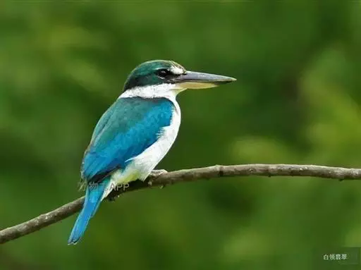 白领翡翠(学名:Todirhamphus chloris):有50个亚种。体长18厘米,体重35-40克。是一种蓝白色翡翠鸟。头顶、两翼、背及尾呈亮丽蓝绿色;过眼纹黑色;眼先黑色,眼眉白色或浅黄色,嘴上部具白点。以白色的颈环及下体为识别特征。 整个下体为白色。虹膜褐色;嘴上嘴深灰,下嘴浅灰;脚灰色。