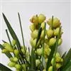 叶3-5枚,丛生在椭圆形的假鳞茎上,叶片剑形,深绿色,叶片尖端有金色嘴艺,因而称为“金嘴”。花茎直立,高出叶面,花香,每支花有7-17朵。