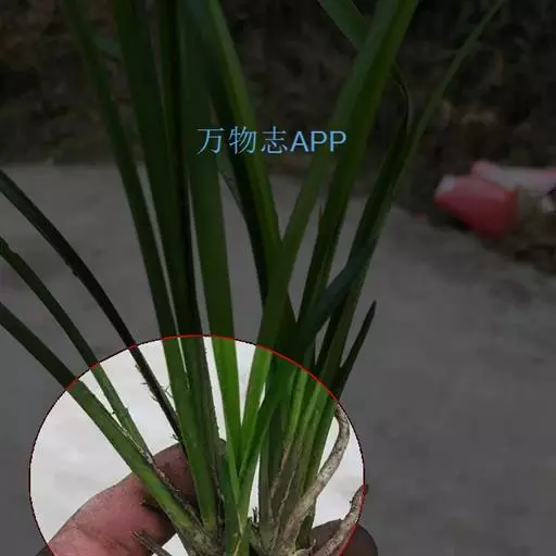 地生植物;假鳞茎卵球形,长2.5-6厘米,宽1.5-2.5厘米,包藏于 墨兰 叶基之内。叶3-5枚,带形,近薄革质,暗绿色,长45-80(-110)厘米,宽(1.5-)2-3厘米,有光泽,关节位于距基部3.5-7厘米处。