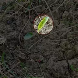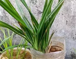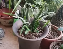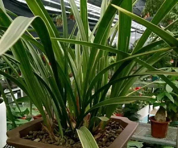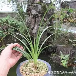 盆选好后,种植前先在盆底排水孔上面盖以大片的碎瓦片,并铺以窗纱,接着铺上山泥粗粒,即可放入兰株(兰株根系的分布要均匀、舒展,勿碰盆壁),然后往盆内填加腐殖土埋至假鳞茎的叶基处。并在泥表面再盖上一层白石子或翠云草,既美观又可保持表土湿润。接着用盆底渗水法使土透湿后取出,用喷壶冲净叶面泥土,放置蔽荫处缓苗,一周后转入正常管理。