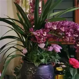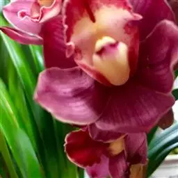 墨兰(学名:Cymbidium sinense (Jackson ex Andr.)Willd.):又名报岁兰,是兰科兰属地生植物。假鳞茎卵球形,包藏于叶基之内。叶带形,近薄革质,暗绿色。花葶从假鳞茎基部发出,直立,较粗壮,一般略长于叶;花的色泽变化较大,较常为暗紫色或紫褐色而具浅色唇瓣,也有黄绿色、桃红色或白色的,一般有较浓的香气;萼片狭长圆形或狭椭圆形;花瓣近狭卵形;唇瓣近卵状长圆形;蕊柱稍向前弯曲,两侧有狭翅;花粉团4个,成2对,宽卵形。蒴果狭椭圆形。花期10月至次年3月。