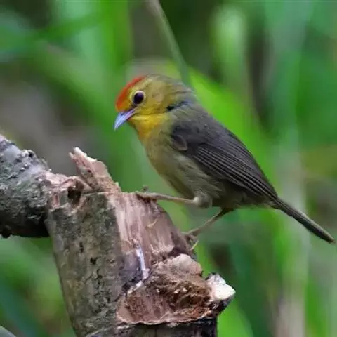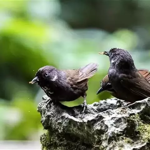 黑顶噪鹛:中型鸟类,体长24-26厘米。前额、脸、颏、喉黑色,头顶黑褐沾棕或深棕橄榄褐色,…