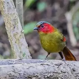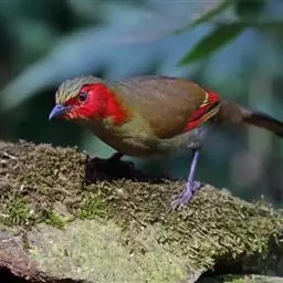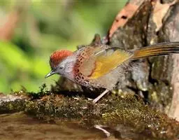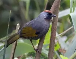 红翅薮鹛是噪眉科、薮鹛属中型鸟类,体长21-24厘米。头顶灰褐色,头侧和颈侧赤红色,上体橄榄褐色,…