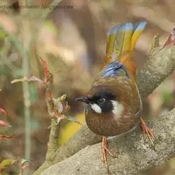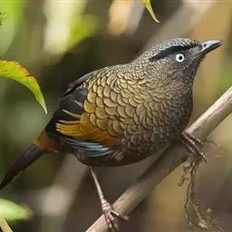 蓝翅噪鹛:噪鹛科、彩翼噪鹛属动物。中型鸟类,体长22-25厘米。上体棕橄榄褐色密被黑色鳞状斑,…