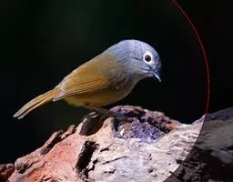 结小群栖于丘陵及山区原始阔叶林的林下植被及竹林层。惧生,不喜开阔地区。鸣声为响亮悦耳而多变的哨音“hoo guo hoo hoo hoo”。有时模仿其他鸟叫。
