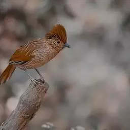 纹喉凤鹛:小型鸟类,体长13-16厘米。头顶和羽冠暗褐色或褐灰色,上体橄榄褐色,飞羽黑褐色,…