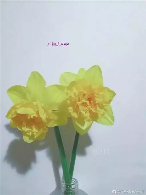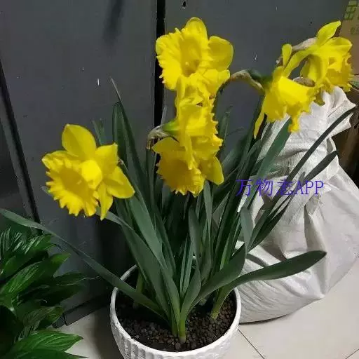 与长筒水仙相似,花被片和副冠均为黄色,花被片和副冠黄色,边缘波皱。
