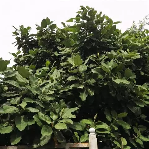 乔木,高达50米,胸径达50厘米;嫩枝被柔毛;顶芽长锥形,被白色长毛。叶革质,卵形或椭圆状卵形,长8-14厘米,先端渐尖或尾状渐尖,基部圆或阔楔形,上面有光泽,侧脉每边12-15条,纤细,末端与密致的网脉网结而不明显,叶柄长1.5-2厘米,无托叶痕。
