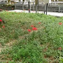 石蒜在园林中,可做林下地被花卉,花境丛植或山石间自然式栽植。因其开花时光叶,所以应与其他较耐明的草本植物搭配为好。栽植密度为株距15-20厘米、行距40厘米,行间种植1行其他常绿植物。
