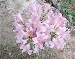 稻草石蒜草本,地生。鳞茎近球形;叶带状;伞形花序,有花5-7朵,花稻草色;花被裂片腹面散生少数粉红…