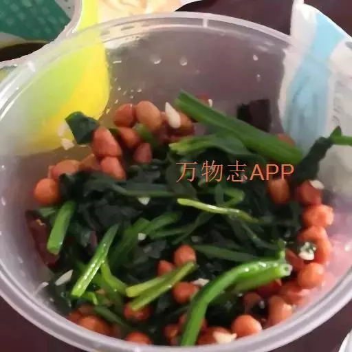 由花生米,菠菜调拌的凉菜。
