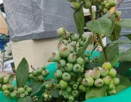 蓝莓是杜鹃花科、越橘属的落叶灌木,小枝绿色,具棱或圆柱形,通常具成行的柔毛;叶片近革质,卵形至椭圆形,…
