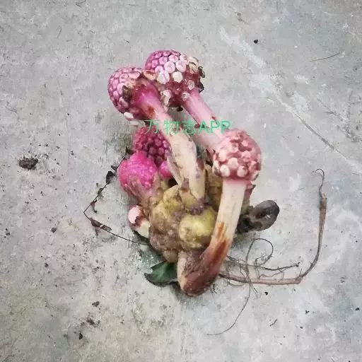 草本,高2.5-9厘米;根茎苍褐色,扁球形或近球形,干时脆壳质,直径25-5厘米,分枝或不分枝,表面粗糙,密被小斑点,呈脑状皱褶;花茎长2-5.5厘米,淡红色;鳞苞片5-10枚,多少肉质,红色或淡红色,长圆状卵形,长1.3-2.5厘米,宽约8毫米,聚生于花茎基部,呈总苞状。花雌雄异株(序);花序近球形或卵圆状椭圆形;雄花序轴有凹陷的蜂窠状洼穴;雄花3数,直径1.5-3毫米;花被裂片3,阔三角形;聚药雄蕊有3枚花药;花梗初时很短,后渐伸长达5毫米,自洼穴伸出;雌花的子房黄色,卵形,通常无子房柄,着生于附属体基部或花序轴表面上,花柱丝状;附属体暗褐色,倒圆锥形或倒卵形,顶端截形或中部凸起,无柄或有极短的柄,长0.8毫米,宽0.6毫米。花期9-11月。