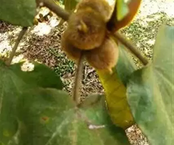 榕果腋生,圆锥状椭圆形,直径20-25毫米,表面疏被或密 生浅褐长毛,顶部脐状突起,基生苞片卵状披针形,长8毫米;雄花生榕果内壁口部,具柄,花被片4,顶端全缘,雄蕊2枚。瘿花花被与雄花同,子房球形,光滑,花柱侧生,短,柱头漏斗形,雌花花被4。瘦果斜卵圆形,表面有瘤体。花期5-7月,果期7月。