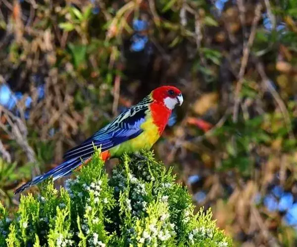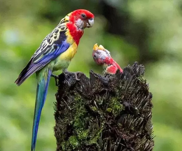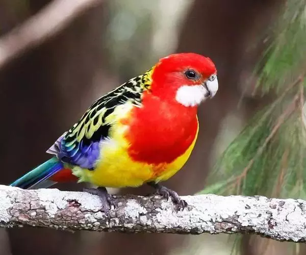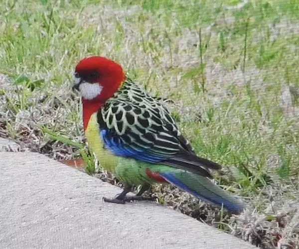 体形特征 30CM~33CM。身上的羽色十分鲜艳,母鸟头部与胸前的红羽比公鸟的羽色暗,面颊白色的部分呈淡灰色,头顶则有一点绿色,而公鸟的红羽为鲜红色,面颊纯白色,头顶红色无绿色参杂,野外数量稳定,全世界约共超过50万只,有3种亚种 ,也是发展出最多变种的玫瑰鹦鹉。青绿的羽色上长有鲜亮的羽毛,背上具鳞片状墨斑。
