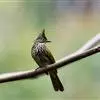 常见于高可至海拔1200米的低地丘陵、沟谷阔叶林、常绿阔叶林或坝边林缘。喜林缘及次生林枝叶稠密的较高树木。叫声是欢悦吵嚷的轻快哨音hee-tee-hee-tee-weet,最后音节为下降声。甚羞怯,偶尔追捕空中昆虫,但通常积极觅食果实。兴奋时羽冠耸起。分布于斯里兰卡。