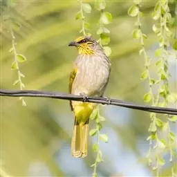 纹喉鹎:体长19厘米,是一种中等体型的偏绿色鹎。特征为头顶、脸颊、颏及喉均具黄色条纹。上体橄榄绿色。…