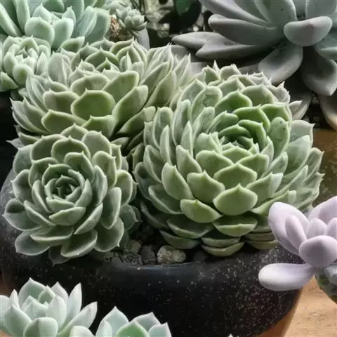蓝石莲是景天科、拟石莲花属的多肉植物。茎部粗壮,成熟植株茎部木质化。叶片莲座型密集排列,株径不会很大,…