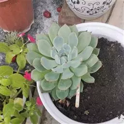 吉娃莲,景天科拟石莲花属,别名:吉娃娃,吉娃莲,植株小型,无茎的莲座叶盘非常紧凑。卵形叶较厚,带小尖,…