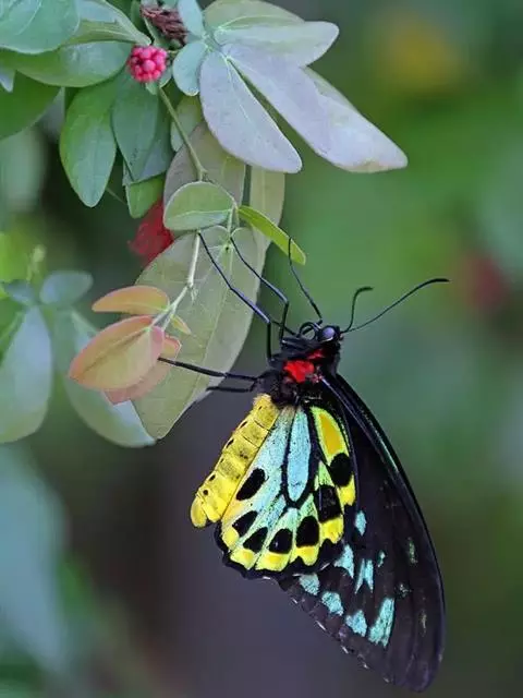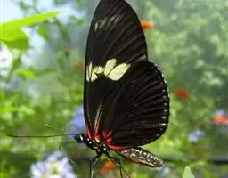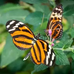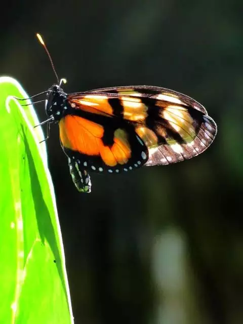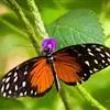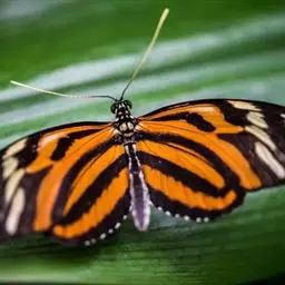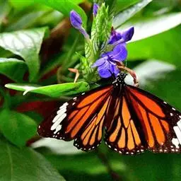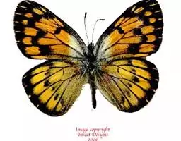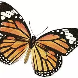 黑脉金斑蝶:翅阔8.6-12.4厘米。雄蝶较雌蝶为大。成年蝶颜色鲜艳,翅膀上有显眼的橙色及黑色斑纹…