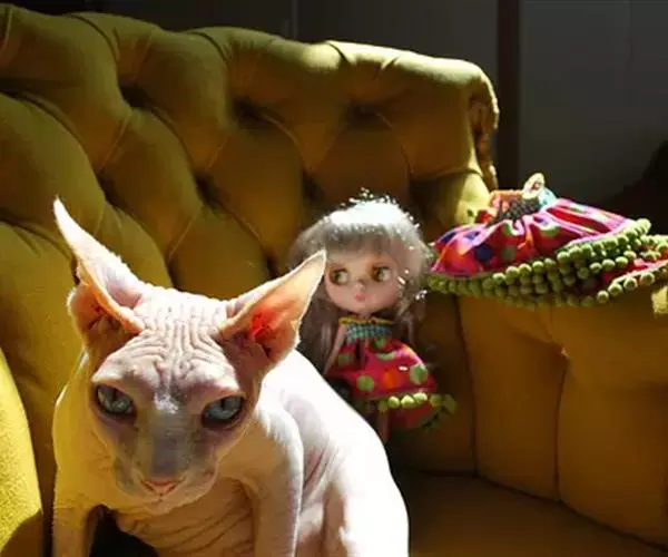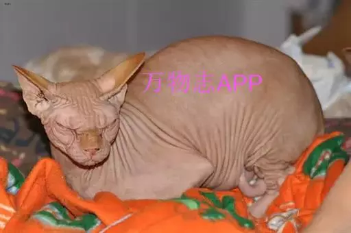 加拿大无毛猫 斯芬克斯猫又名斯芬克斯无毛猫。早在1700年前就有南美墨西哥土著居民饲养过这种无毛猫的记载。但直到该品种在猫展中获得成功人们才开始注意它,并对它产生兴趣。TlCA承认该品种,此种猫在2005年被认定为稀有品种。