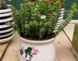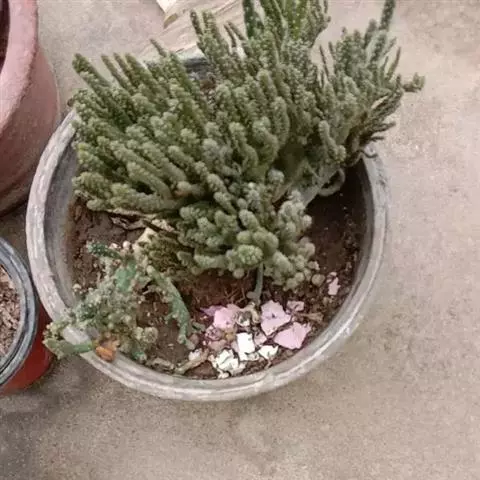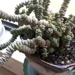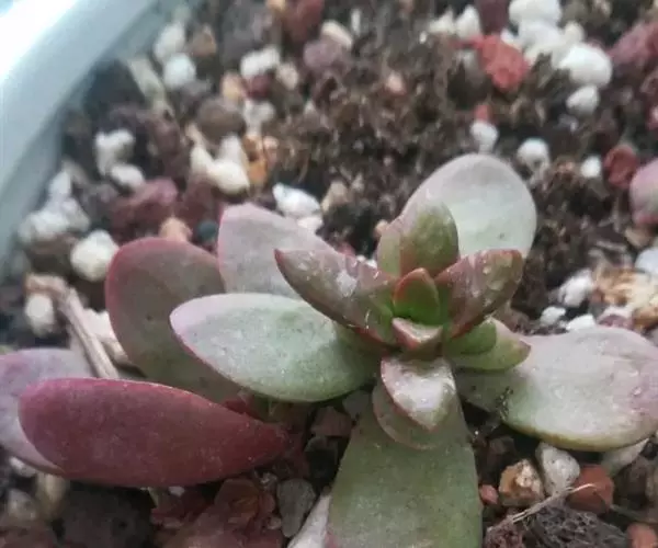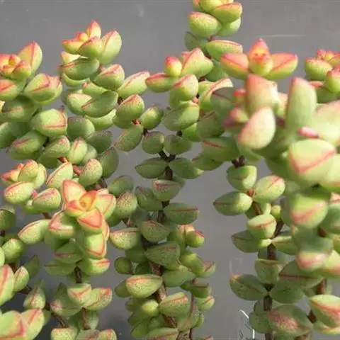 红稚儿为多年生肉质草本植物,植株丛生,有细小的分枝,茎 红稚儿 肉质,时间养久了茎会逐渐半木质化,红稚儿叶片有点薄,叶片颜色绿,叶缘较薄,在晚秋和早春,温差大的时候整个植株全部会变成红褐色。红稚儿叶片交互对生无叶柄,基部连在一起,新叶上下叠生,成叶上下有些许间隔。开花为白色,簇状花序。