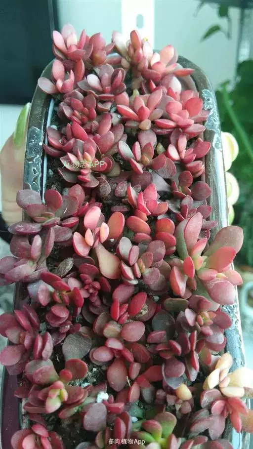 喜温暖干燥和阳光充足的环境,怕低温和霜雪,耐半阴,无明显休眠期。易泛滥。 非常抢眼的一种多肉植物,正常为绿色,日照时间增加及大温差会整株变为红色,并能开出很长花径的白色小花,较喜欢日照,对水分需求较多。夏季要适当遮荫,避免灼伤。 冬天绽放可爱的白色花朵,夏季不太引人注目。收到的亲朋友们尽可能的为她保持光照充足的环境,浇水后如果没有明亮光线照射,叶片将有可能逐渐变成绿色,即会少了那可爱的一抹红。