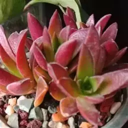 拉丁学名:Crassula pubescens subsp. radicans Toelken ,为景天科、青锁龙属 多肉植物,颜色反差巨大,平时为绿色,日照充足的春秋季节,变为火红色。