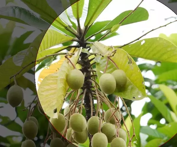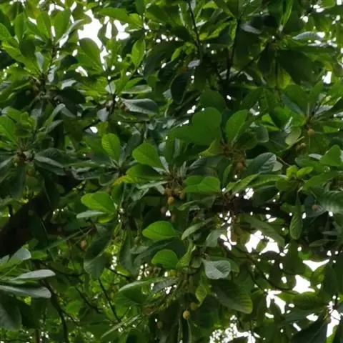 核果椭圆形,长3-3.5厘米,有褐色茸毛。花期8-9月,果实在冬季成熟。