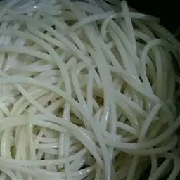 2、炸鱼段。盐、酱油、料酒、五香粉、葱段、姜片做调料,鱼块在调料里拌匀腌制好,油锅炸至6分熟,捞出用干淀粉裹匀,入锅再炸熟。