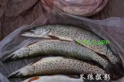 黑斑狗鱼 大型淡水鱼类。一般体长在600毫米左右,体重在1000-2000克,最大的个体体重可达16公斤以上。