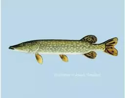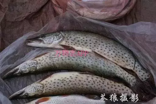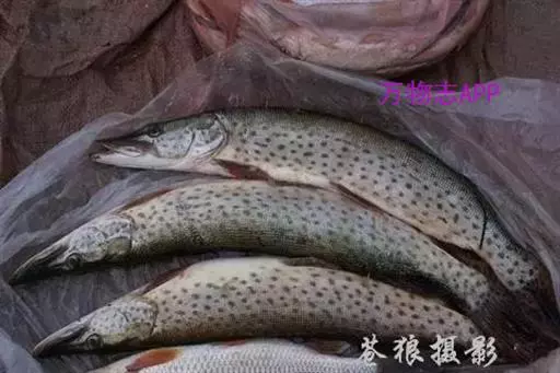 黑斑狗鱼 狗鱼是大型食用鱼,其肉厚刺少,肉质细嫩,新鲜狗鱼可做生鱼片,也可熏制,味道均佳。资源量已有很大衰减。