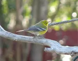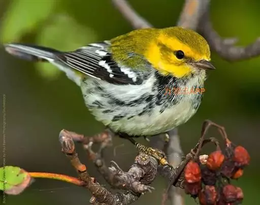 林柳莺(学名:Phylloscopus sibilatrix):体长约11厘米,是一种体型小的黄绿色柳莺。两性相似。上体除两翅和尾羽暗褐色外,余均呈黄绿色;眉纹自嘴基伸向颈后,呈黄色;贯眼纹短,呈暗褐色;脸颊、颏、喉、胸呈黄色,但胸部色淡,腹部为丝光白色。虹膜褐色;上嘴黑褐色,下嘴肉黄色;跗蹠黄褐色。