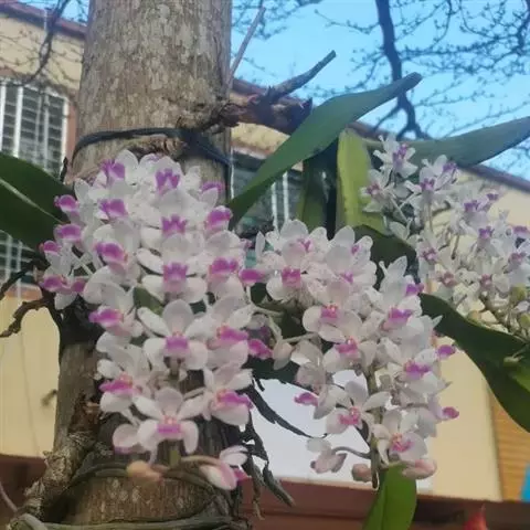 小蓝万代兰:兰科,万代兰属附生草本植物。茎长可达8厘米或更长,叶多少肉质,带状斜立,花序近直立,…