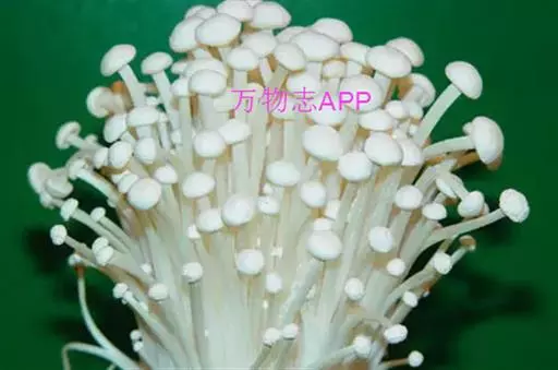 白金针菇 浙江省江山市微生物研究所菌株。出菇整齐,每丛200株左右,柄长15~23厘米,菌盖内卷,不易开伞。白色品系对光线不敏感,即使栽培环境有较强的散射光,子实体仍是通体洁白,有光泽,适合制罐或盐渍加工出口。