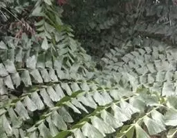 叶大型,呈扇状深裂,形成近半月形,叶片长1.5-2米,宽约2.5-3.5米,裂片80-100,裂至中部,剑形,先端浅2裂,长60-100厘米,裂片宽7-9厘米;叶柄长2.5-3米,粗壮,宽7-10厘米,上面有沟槽,边缘具短齿,顶端延伸成下弯的中肋状的叶轴,长约70-90厘米。