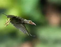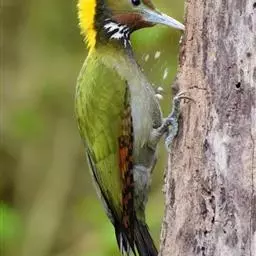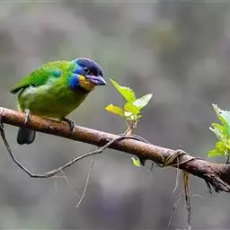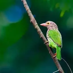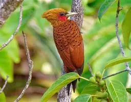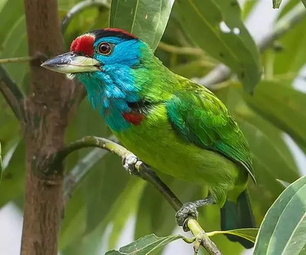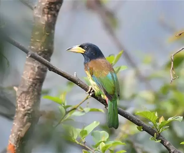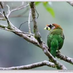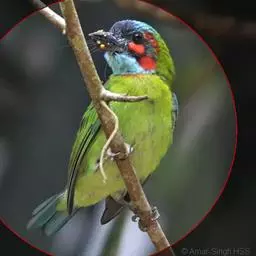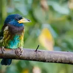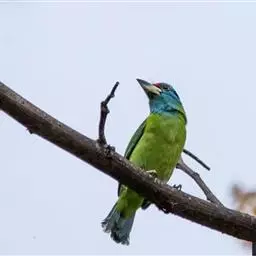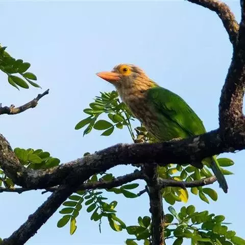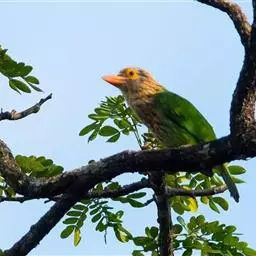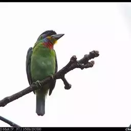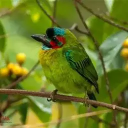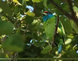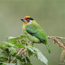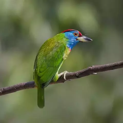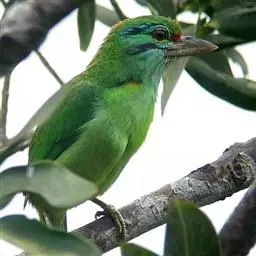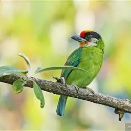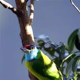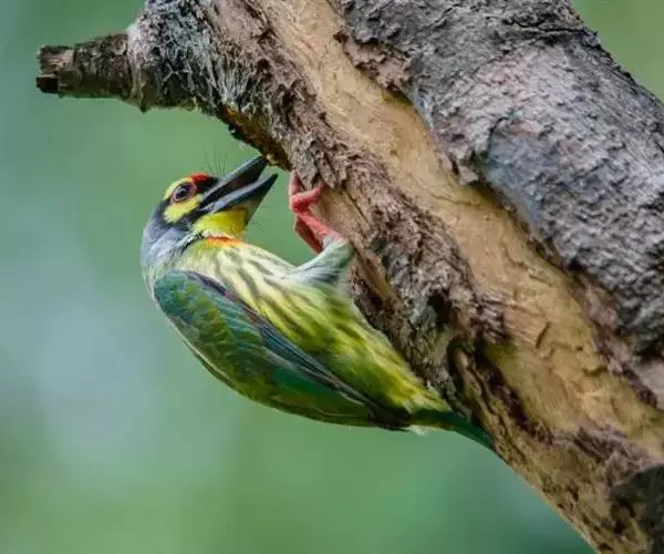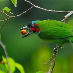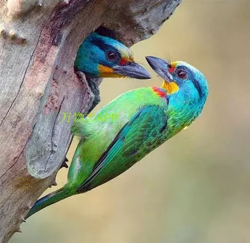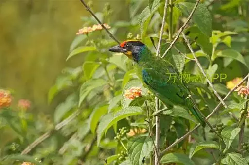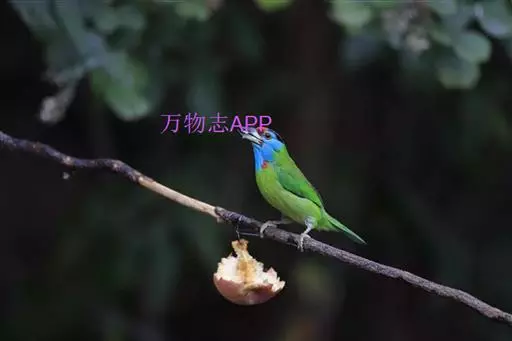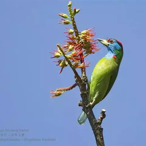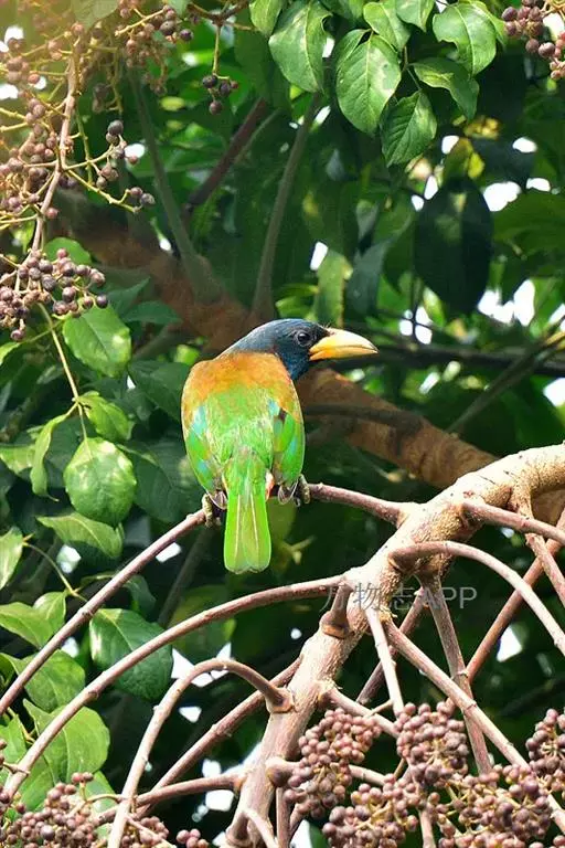 因为拥有良好的保护色,若不鸣叫很难发现它们的身影。以果实、浆果为主食,繁殖期育雏时则常以昆虫喂食幼鸟。常发出单调浑厚的“咯、咯、咯…”叫声,像极了和尚敲打木鱼的声音,加上头部参杂红、黄、蓝、绿、黑五色,所以又称为“森林里的花和尚”。繁殖期会在树干以其强而有力的嘴喙啄洞,巢筑于其内。