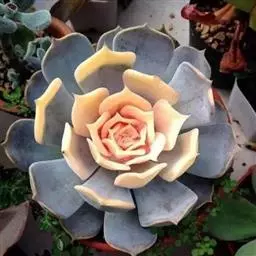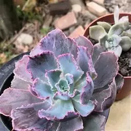 蓝石莲是景天科、拟石莲花属的多肉植物。茎部粗壮,成熟植株茎部木质化。叶片莲座型密集排列,株径不会很大,…