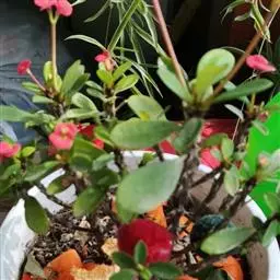 虎刺梅:别称铁海棠,是蔓生灌木植物。茎多分枝,长60-100厘米,直径5-10毫米,具纵棱,密生硬…