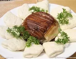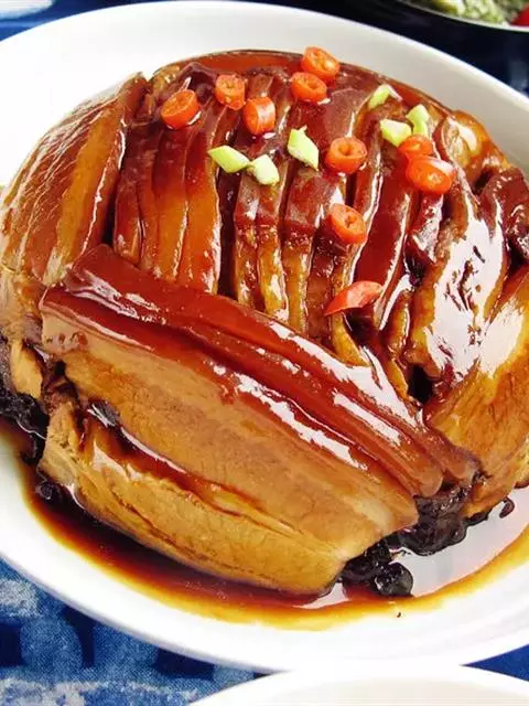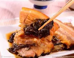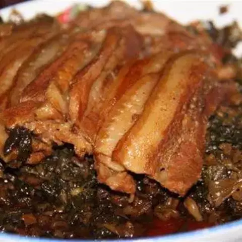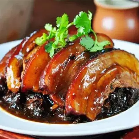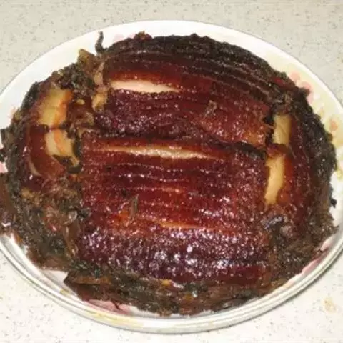 梅菜扣肉,汉族传统名菜,属客家菜 。制作材料有五花肉、梅菜、葱白、姜片等。