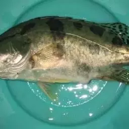 体背部青黑色,具深蓝色不规则斑纹,斑纹延续至侧线下方,但不伸达腹部。侧线下部无蓝黑色小圆斑,腹部黄白色,头顶部黑色。背鳍、胸鳍和尾鳍灰黑色。