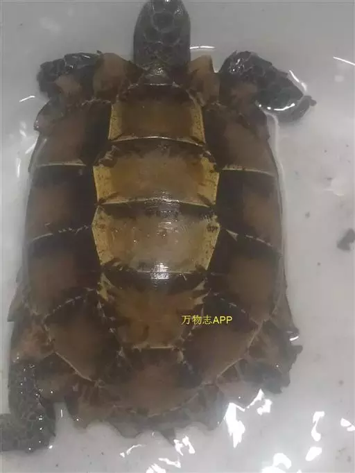 生活时,背甲黄褐色,椎盾及肋盾边缘黑褐色,常有暗色辐射斑;腹甲黄褐色,缀有暗褐色斑块或辐射线。头、四肢、尾黑褐色。