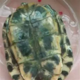 拿健康龟较重;若感觉龟体较轻,则为不健康龟的表现。将龟放入浅水中(水位达龟背甲高度的一半),观察到龟若大量、长时间饮水,则为不健康龟。再将龟竖立,开其口观察舌表面的颜色。如健康的龟,舌表面为粉红色,且湿润,表面有薄薄的白苔或薄黄苔;如为不健康的龟,舌表面为白色、赤红、青色,舌苔厚,呈深黄、乳白色或黑色。健康龟的鼻部干燥无龟裂,不健康龟的鼻部红肿、有鼻液,患病严重的龟,有的鼻孔会出血。健康龟的口腔四周清洁无黏液。